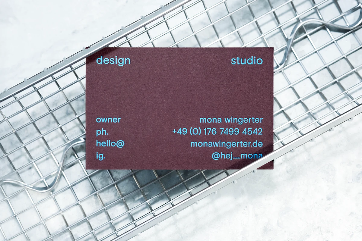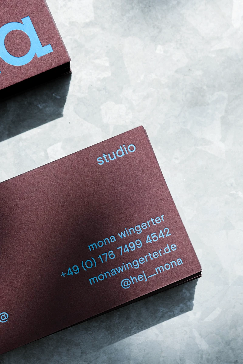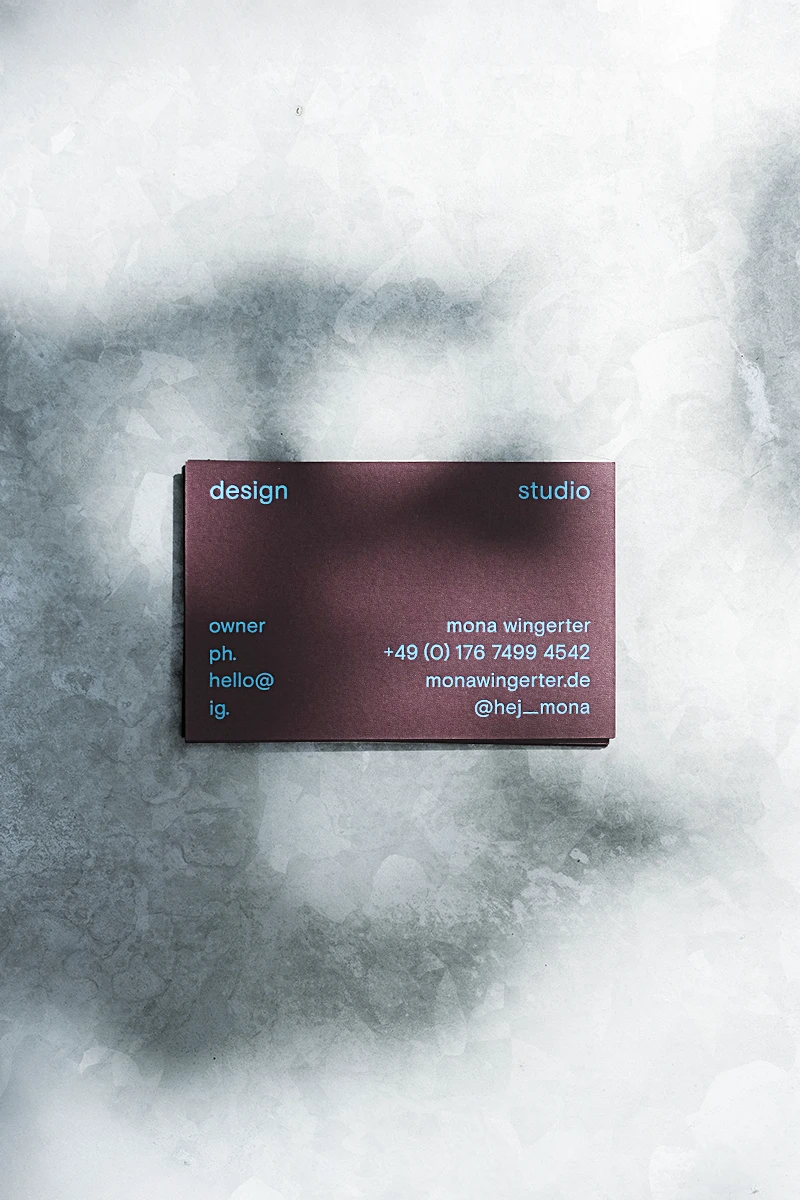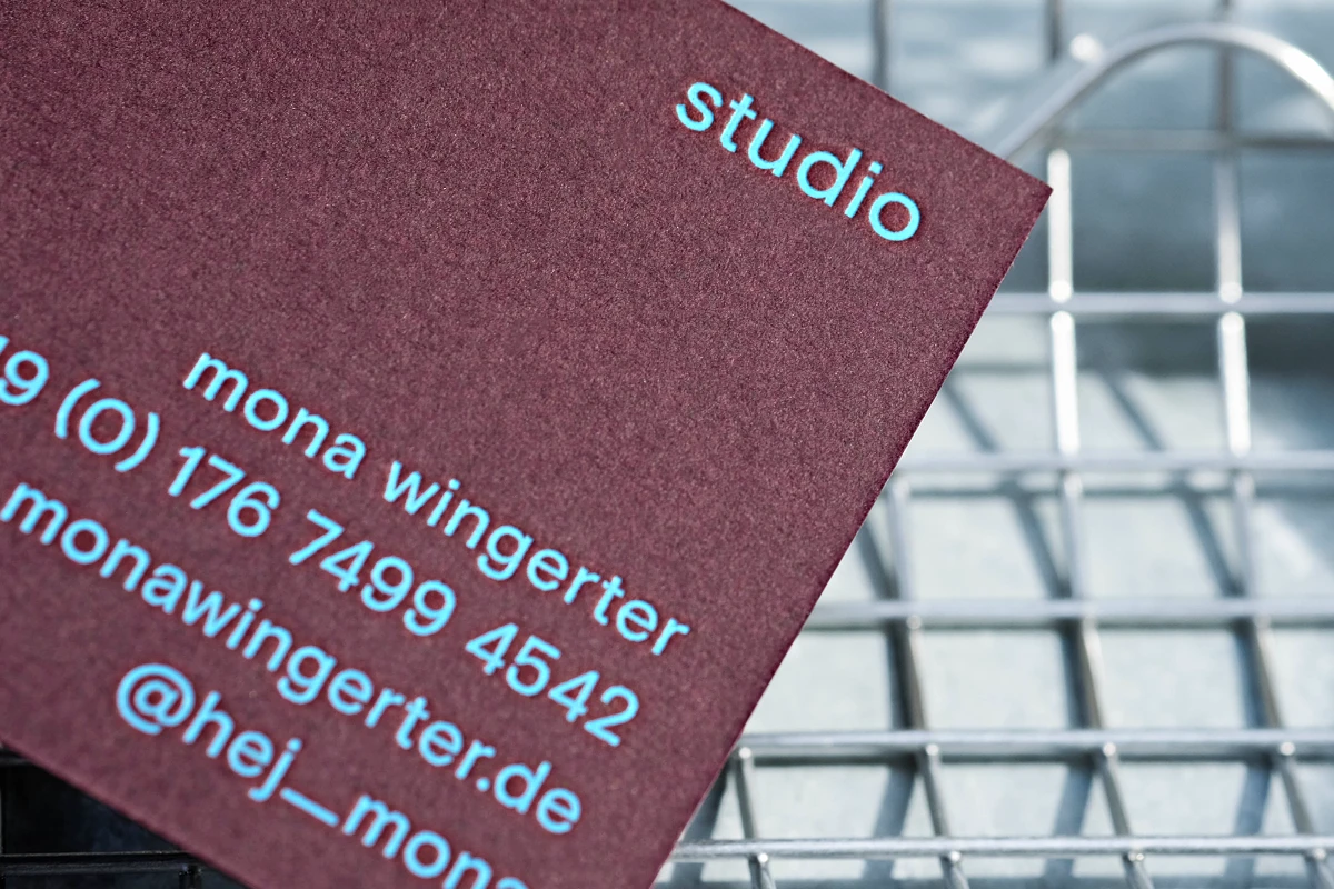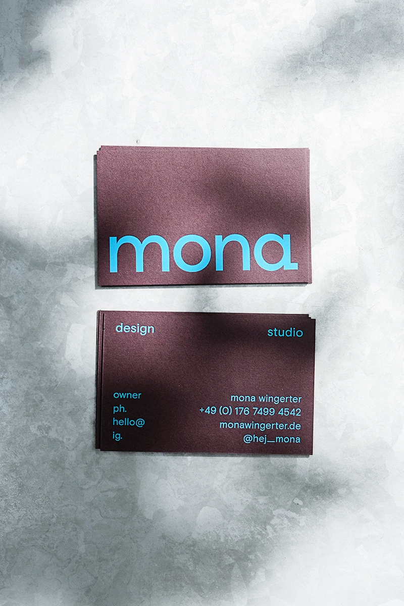 Für das Design Studio mona wurde ein neues visuelles Erscheinungsbild entwickelt, das die klare, moderne Haltung des Studios unterstreicht. Das Logo präsentiert sich clean und bold in einer reduzierten, geometrischen Typografie, ohne sich in den Vordergrund zu drängen. Es fügt sich harmonisch in das Gesamtbild der Markenkommunikation ein und lässt den Projekten auf der Website weiterhin Raum zur Entfaltung, ein ausgeglichener Mix zwischen Marke und Inhalt. Die neue Visitenkarte übersetzt den klaren Markenauftritt in Farbe, Typografie und Haptik: ein dunkelrotes Feinstpapier in Kombination mit einer hellblauen Folienprägung. Das Zusammenspiel aus matter Oberfläche und glänzender Akzentfarbe schafft einen hochwertigen Kontrast, der die Karte mit der geometrischen Typografie zum Blickfang macht.